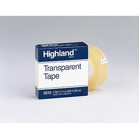 Highland(TM) Transparent Tape 5910 is a utility grade, clear polypropylene backing with an acrylic adhesive.