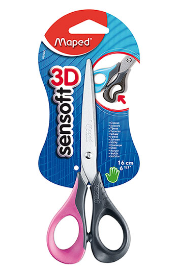 Maped® 6.5" Sensoft scissors with flexible and ergonomic handles for optimum comfort. Blunt tip. Assorted colors. |
