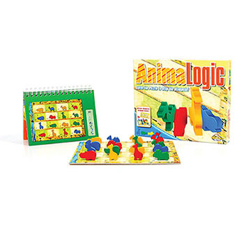 Winner of the 2009 Parents' Choice Gold Award Named one of the best educational toys by USA Weekend Solve the Puzzle to Stop the Stampede! The Story . . . The river is rising and the rapids are raging! Can you help the animals to safety by solving the puzzle? AnimaLogic is a brilliant new puzzle game that will have children working their brain overtime to solve these wonderfully smart safari stumpers! Lions, hippos, giraffes and camels are all waiting to get to the other side of the river. The animals know they may only cross the river bridge one at a time and they must travel in the proper order to safely arrive at the other side. With sixty puzzles and five levels of difficulty (beginner to advanced), these logic puzzles have players solving the correct sequence to remove the sixteen wooden animals from the game board. Expect sequencing, color and object recognition, and matching abilities to refine quickly. For logic building - AnimaLogic is progressively more challenging with each puzzle attempt - it's WILDLY effective entertainment! AnimaLogic captures the interest of the whole family. ·Marvelously high quality, educational game ·Captures interest of a wide range of ages and abilities ·Game Contents: ·16 wooden animals in yellow, blue, green and red. ·4 lions—1 each of yellow, blue, green and red ·4 hippos—1 each of yellow, blue, green and red ·4 giraffes—1 each of yellow, blue, green and red ·4 camels—1 each of yellow, blue, green and red ·Durable game board ·Game notebook (includes 60 full color puzzles and solutions) |