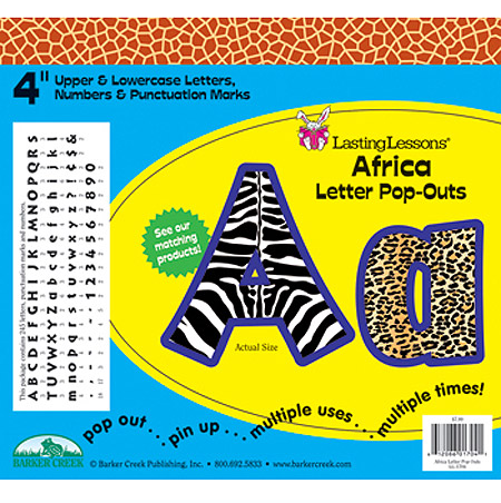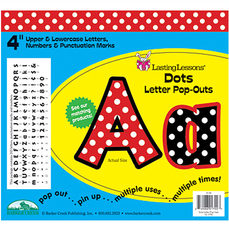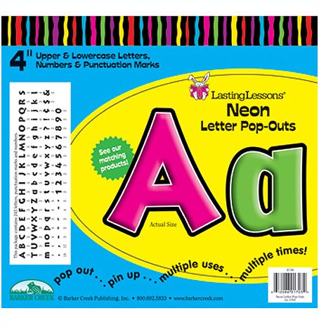 Description Letter Pop-Outs! 4" Pop-Out Letters. Set includes 193 upper and lowercase letters, punctuation marks and numbers Options: