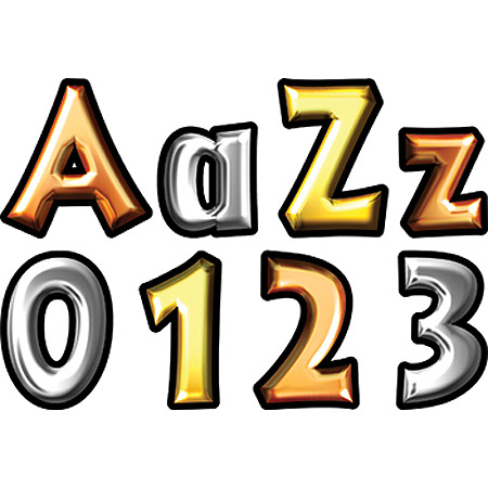 Your next decorating project will "pop" with these metallic-colored 4" letters from Barker Creek! The set includes 245 letters, punctuation marks and numbers in gold, silver and bronze-tones. They have a 3-D look and are just plain cool!