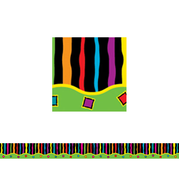 Dress up your classroom with our bright, colorful borders! Each package includes 12 strips of trim that measure 35" long x 3" deep — 35 feet of border in all! Printed on glossy, heavy paper, our trim is durable and beautiful....and our designs are second to none! Coordinating charts, bookmarks, file folders, library pockets, desk and name tags are available for almost all of our border styles so you can build on your classroom theme in style!