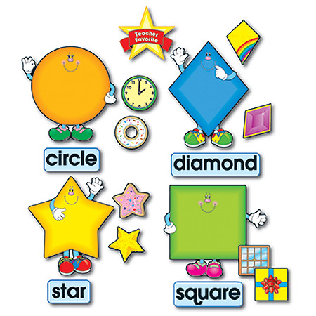 8 shapes (largest measures 675in. x 16in.). 8 shape words (largest measures 1125in. x 3in.). 16 shape accents (2 for each shape). Resource guide.