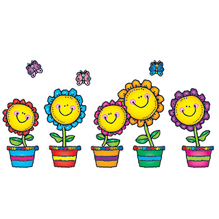 - 2 medium flowers and 2 small flowers - 5 flower pots - 3 butterflies - Resource guide |