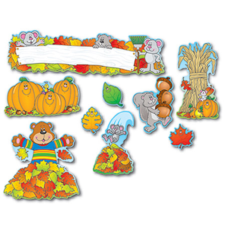 Included are 8 fall scenes, ranging from approx. 5.25" x 8" to 10" x 10.25"; 30 leaves; and a blank header. Resource guide provided, which includes reproducible badge and bookmark patterns.