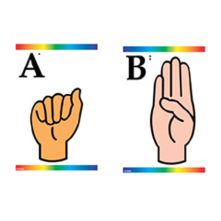Each card features a letter, a hand signing the letter, and Braille for the letter. The Braille can be raised so students can feel it! Twenty-six 6" x 9" cards per package.