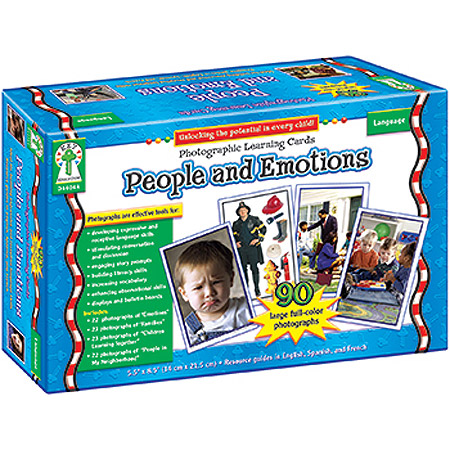 Themed set of Photographic Learning Cards is a great classroom value for speech and language, special education, ESL and ELL programs, Title I programs, Head Start, resource rooms, early childhood, and elementary classrooms. Set includes Emotions, Families, Children Learning Together, and People in My Neighborhood Photographic Learning Cards, for a total of (90) 5.5" x 8.5" cards. Also includes 6 resource guides.