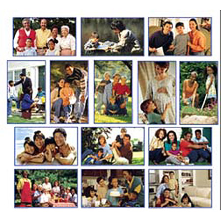 (24) 8.5 inch x 5.5 inch cards showing different family groups. Highlights the value of various family groupings. Super story or discussion starters for early learning, ELL, Head Start programs, and Title 1. Includes a resource guide in English, Spanish, and French. An important language development tool for early childhood. A wonderful resource for English Language Learners (ELL) of all ages.