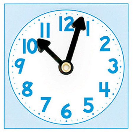 Made of cardboard with movable plastic hands, this Small Clock Dial measures 4" x 4".