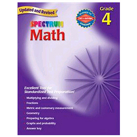 Our proven Spectrum Math grade 4 workbook features 184 pages of drills and practice in math fundamentals. Recently updated to current national math and testing standards. This workbook for children ages 9 to 10 uses everyday math applications to teach basic skills.
