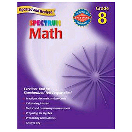 Our proven Spectrum Math grade 8 workbook features 176 pages of drills and practice in math fundamentals. Recently updated to current national math and testing standards. This workbook for children ages 13 to 14 uses everyday math applications to teach basic skills.