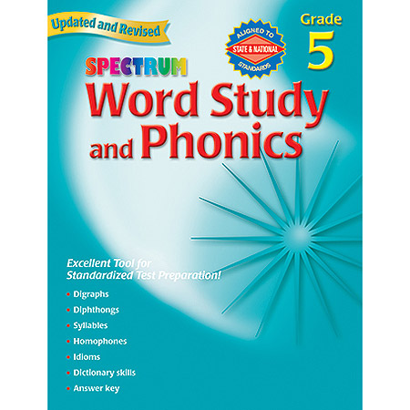 Our proven Spectrum Phonics grade 5 workbook features 176 pages of age-appropriate activities for reinforcing vocabulary knowledge and reading comprehension. Recently updated to current national testing standards, including nonfiction activities and a revised sequence for smooth transitioning between skills. This workbook for children ages 10 to 11 emphasizes phonics and word study as building blocks in reading proficiency. Phonics skills include: *Digraphs *Diphthongs *Syllables *Homophones *Idioms *Dictionary skills Our best-selling Spectrum Phonics series features age-appropriate workbooks for Kindergarten to grade 6. Developed with the latest standards-based teaching methods that provide targeted practice in fundamentals to ensure successful learning!