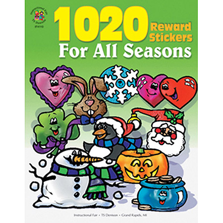 Here's a large collection of reward stickers to get you through the seasons with flying colors! Includes 1020 reward stickers covering seasons and holidays bound into a book for easy use and storage. Each sticker is approximately 1 1/4" x 1".