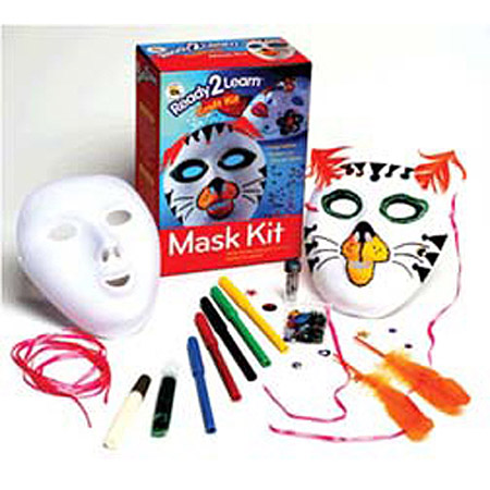 Clever and versatile, our Mask Kit presents everyone the opportunity to make pre-planned designs or use their imagination to make an endless variety of creations while helping to develop fine motor skills. Uses include party costumes and dÉcor, encouraging creativity, play acting, and story telling. Kit includes: 2 sturdy flock-surfaced plastic masks, ribbon, feathers, glitter, glitterglue, glue, pens, sequins, and instructions.
