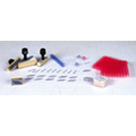 Three-dimensional rubber stamp replicas of Base 10 Blocks can be used for student work and for making worksheets. Set 798 consists of 6 stamps, 2 units, 2 rods, 1 flat and 1 cube. Each stamp is mounted on a hardwood handle. Set 802 consists of 4 stamps on grooved hardwood. One unit, 1 rod, 1 flat and 1 cube.