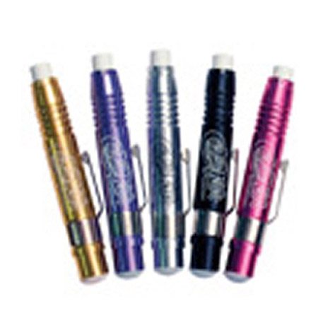 Hold your chalk in style! 6 dynamic colors vac-metalized: pink, purple, green, black, or gold complete with clip that fits notebooks, pockets, belts and more. Non-toxic. Let us choose a color for you. Fits standard board chalks.