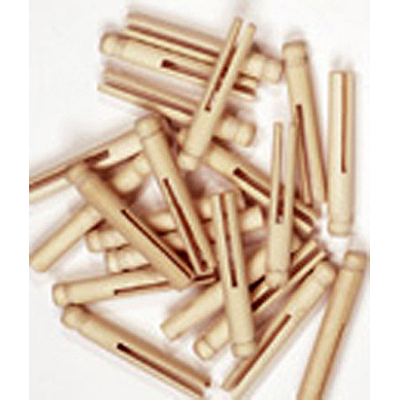 Wooden doll pins measure 3 3/4"L x 9/16"D. Non-toxic dyes. 30 pieces.