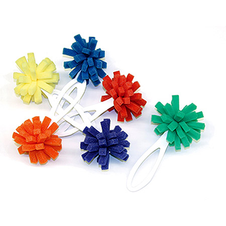 Dip, dab and create. Set of six fun foam brushes on plastic handles. Different pressure makes unique patterns. Encourages experimentation!