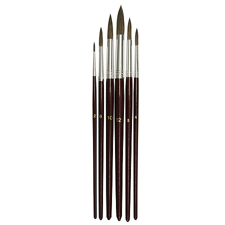 Finely tapered camel hair brushes with seamless aluminum ferrules and natural wood handles. Available in a variety of sizes.