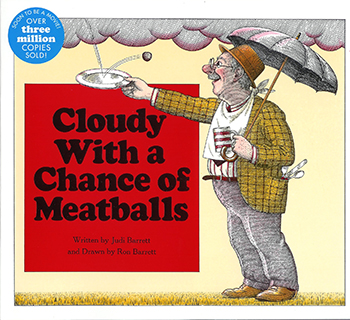 If food dropped like rain from the sky, wouldn't it be marvelous! Or would it? It could, after all, be messy. And you'd have no choice. What if you didn't like what fell? Or what if too much came? Have you ever thought of what it might be like to be squashed flat by a pancake? |