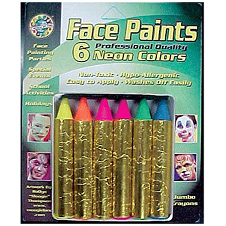 These easy to use face paints are fun and creative! Made with the highest quality materials to ensure professional face paint designs, they include skin conditioners like lanolin and beeswax. Jumbo, neon colors.