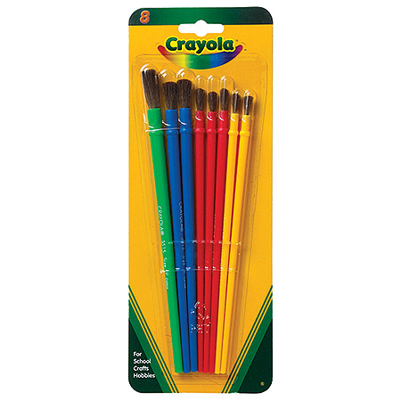 Keep the paint flowing and your child's creativity growing with this versatile set of paintbrushes. The Crayola Arts & Crafts Brushes set includes 8 high-quality paint brushes made of 100% natural hair, in assorted sizes. These brushes make a great addition to any child's paint set.