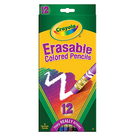 Crayola erasable colored pencils deliver bright colors and smooth laydown. Integral eraser on every pencil.