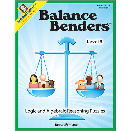 Move over Sudoku, here come Balance Benders™! You can use these books as quick, fun logic problems or as stepping stones to success in algebra. Children develop deductive thinking and pre-algebra skills as they solve balance puzzles that are more fun and addictive than Sudoku puzzles! Children must analyze each balance to identify the clues, and then synthesize the information to solve the puzzle. Try one -- and then try to stop!