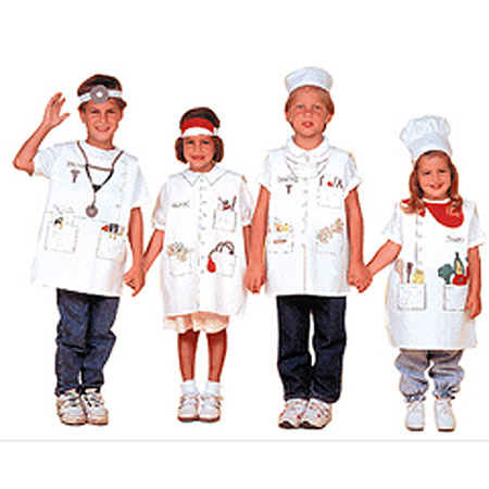 These dressups instill high self-esteem while allowing creativity and fun. Each outfit features a velcro closure in the back and includes a matching hat. Cotton blend, washable, color firm, highly durable. Costumes fit all sizes from ages 2-7.