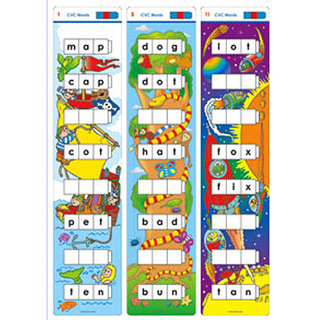 Motivate young students to make and break simple three letter words with this set of 12 delightful activity cards. Designed for use with Unifix Letter Cubes, each word ladder requires children to complete a series of words by changing one sound at each step down, reinforcing in concrete terms the effect of swapping one sound for another. Colorful, durable cards are 3½ x 16 inches and teaching notes and answers are included.