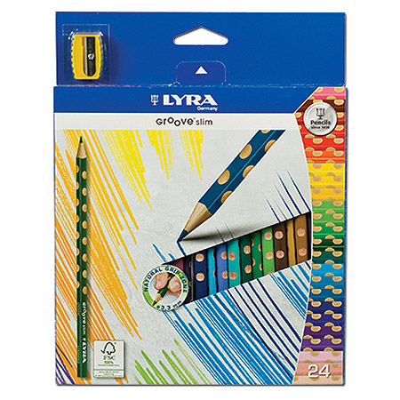 Innovative ergonomic shape with natural grip zone. Off-set slide guards for thumb, index and middle fingers support an optimal writing hold even after sharpening. Large size for small hands and shading large areas. Break resistant core holds up under pressure.