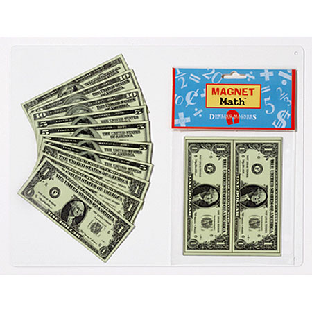 Learn to count money with this set of assorted magnetic U.S. Bills, including 5 ones, 4 fives, 2 tens and 1 twenty.