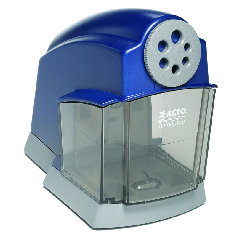 The SchoolPro sharpener from X-ACTO is the ideal electric pencil sharpener for the classroom. Designed by teachers searching for a product that would place an added emphasis on safety, the SchoolPro features a unique cutting blade that produces a safe, rounded pencil point. This — coupled with the sharpener's durable design and patented guard against over-sharpening — makes this an electric pencil sharpener that is perfect for younger students.