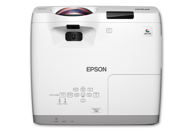 ackage Includes: - PowerLite 530 XGA 3LCD Projector - Power Cord - Computer Cable (VGA) - Projector Remote Control - Batteries - User Manual CD - Lens Cover - Quick Setup Sheet - Projector Software CD - Password Protection Sticker Ultra bright and easy to use, the PowerLite 530 short-throw projector offers incredible performance for inspiring classroom lessons. Delivering 3x Brighter Colors than competitive models, Epson 3LCD projectors ensure vivid images. Featuring 3200 lumens of color brightness and 3200 lumens of white brightness, the 530 shines - even in sunny rooms. Project images up to 108" from 4' away with minimal shadows or glare. Utilizing low-cost, long-lasting lamps, this performer provides a low total cost of ownership. It also features flexible installation. Moderator device management software allows instructors to wirelessly share students' work from multiple devices, simultaneously - including computers, iOS and Android devices. Features: - Standard Mode Brightness: 3200 lm - Projection Method: Front, Rear, Ceiling -Limited Warranty: 2 Years - Contrast Ratio: 16,000:1 - Normal Mode Lamp Life: 5,000 hours - Output Scan Format: 720p - Dimensions: 13.5" W x 12.4" D x 5.2" H -Green Compliance Certificate/Authority: RoHS - Economy Mode Lamp Life: 10,000 hours - Operating Power Consumption: 315 W - USB: Yes - Green Compliant: Yes - Maximum Resolution: 1600 x 1200 - Weight (approx.): 9 lbs. - Lamp Type: UHE - Graphic Mode: XGA - HDMI: Yes - Native Resolution: 1024 x 768 - Video Signal Standard: HDTV - Lamp Power: 215 W - Native Aspect Ratio: 4:3 - Maximum Diagonal Image Size: 108" - Number of Lamps: 1 - Maximum Focal Length: 6.40 mm |