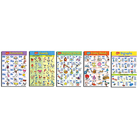 Basic phonics he Dr. Seuss way! Includes 5 panels, a teacher's guide and reproducibles. Aligns with MCREL national standards for language arts. Partial set shown. Each set contains four or five 17" x 24" panels.