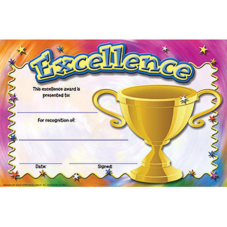 Reward students who work hard with bright, colorful recognition awards. Each 8 1/2" x 5 1/2" award is printed on sturdy card stock.Each shrinkwrapped package contains 36 identical awards.
