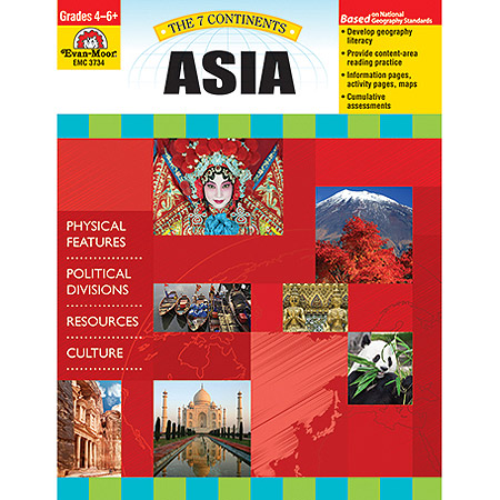 The 7 Continents: Asia helps students learn about Asia through engaging reading and writing activities. Five geography units cover the following standards-based topics: Section 1: Asia in the World Introduces students to the location of Asia in the world. Asia's Relative Location Asia's Hemispheres Asia's Absolute Location Using a Projection Map Section 2: Political Divisions of Asia Introduces students to the six regions and 50 countries of Asia. Population of Asia Countries of Asia Largest Countries by Area Largest Countries by Population Southwest Asia South Asia Central Asia North Asia East Asia Southeast Asia Largest Cities of Asia Section 3: Physical Features of Asia Students learn about the landforms and bodies of water of Asia. Asia's Diverse Landscape The Himalayas Trek to the Summit of Everest The Indian Subcontinent The Arabian and Gobi Deserts Siberia's Landforms Japan's Islands Asia's Tropical Rainforests Asia's Bodies of Water Asia's Inland Seas and Lakes Important Rivers of Asia Section 4: Valuable Resources of Asia Students learn about the various natural resources of Asia. Oil Production in Asia China's Coal Energy Fishing in Asia Rice: An Asian Staple Asia's Forests Amazing Wildlife of Asia Tigers of Asia Working Animals Section 5: Asian Culture Introduces students to the architecture, education, arts, beliefs, and traditions of Asia. Tourist Attractions Arts and Entertainment Major Religions of Asia Education in Asia Asian Cuisine Celebrations |