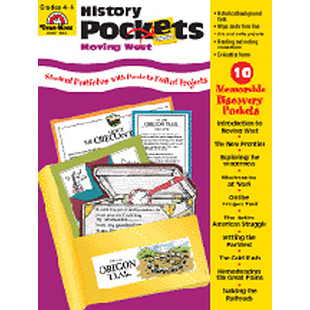 In History Pockets—Moving West, Grades 4—6, you'll find ten memorable discovery pockets. The introduction pocket gives an overview of the westward movement. The other pockets feature nine adventurous groups of people who took part in the westward movement.The book includes the following pockets: Introduction to Moving West--map, time line, and a collage, The New Frontier--Daniel Boone and George Rogers Clark, Exploring the Wilderness--Lewis and Clark and mountain men, Missionaries at Work--the Whitman and the Sager families, On the Oregon Trail--pioneers heading west in covered wagons, The Native American Struggle--the Navajo, the Cherokee, and the Sioux, Settling the Far West--California, New Mexico, and Texas, The Gold Rush--Sutter's Mill and gold fever, Homesteading the Great Plains--prairies and Benjamin "Pap" Singleton, Building the Railroads--transcontinental railroad and Chinese laborers. In each of the pockets you will find: a reproducible pocket label, a bookmark of short, fun facts about the subject, a fact sheet of background information for teacher and students, arts and crafts projects, plus writing activities. Evaluation forms are provided at the end of the book for teacher and student assessment purposes.