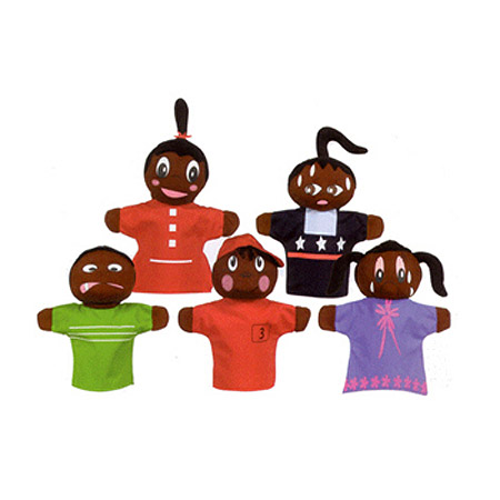 These puppets have detailed expressions to help children learn about and express their feelings of happiness, sadness, fear, anger and embarrassment. Durable fabric is surface washable. Comfortably fit child or adult hands. Set of 5.