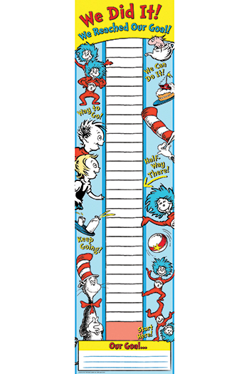 Motivate all ages to achieve more with this bright Dr. Seuss Goal Setting Banner. It is 12" x 45" and folds flat for storage |