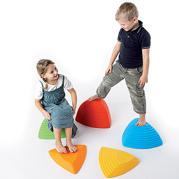 Five "hilltops" in different height will inspire children to jump from top to top. Hilltops develop children's ability to estimate distances and make them familiar with heights |
