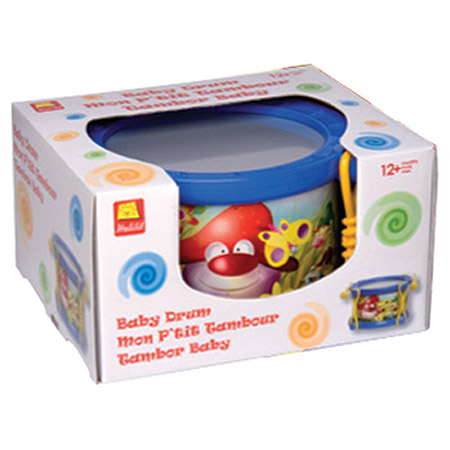 Real drum sound for your first drum! Consistently a best seller due to quality sound and safety. Includes two one-piece child safe mallets and a plastic head which contributes to a real drum sound. Colorful and attractive graphics on drum shell. Safe for ages +12 months.