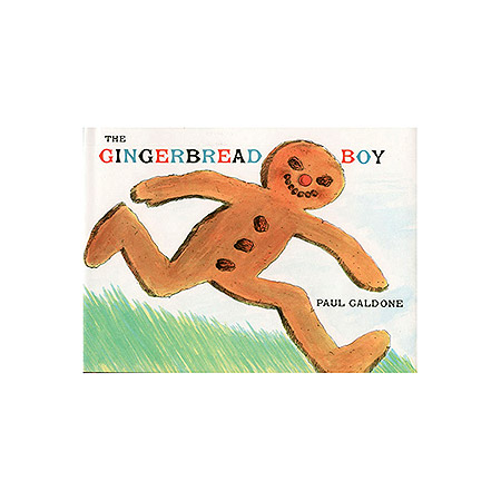 "The classic tale of the old couple, with no children of their own, who bake a gingerbread boy to keep them company. Just as the little old woman is about to take him from the oven, he slips away and runs out the door past a cow, a horse, a group of threshers, mowers, etc. All follow in hot pursuit until the gingerbread boy meets up with a wily fox, and `at last and at last he went the way of every single gingerbread boy that ever came out of an oven . . . He was all gone!' A wonderfully frenetic cross-country chase is depicted in Galdone's broadly humorous color wash drawings. Of the eight editions of this well-known story now in print, this hilarious version is the most delectable." --School Library Journal, starred