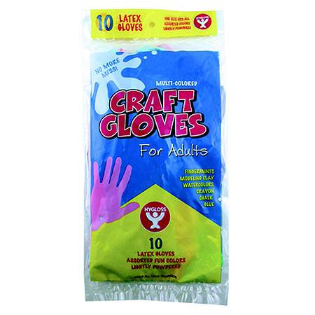 New craft gloves for adults and children are great for hands-on craft projects. 100 gloves per dispensable box. 12 kids gloves per bag and 10 adult gloves per bag.