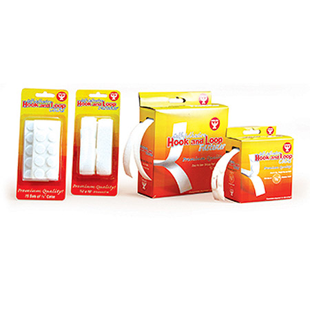 An easy, no-mess way to fasten things together. The hook & loop interlock for a strong hold. Both hook & loop are self-adhesive.