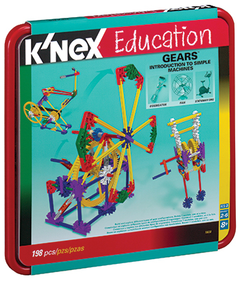 Builds 7 different replicas of real-world models, one at a time. Set includes color-coded building instructions with real-life photos and key facts for each model. Models demonstrate 2 spur gear examples, 2 crown gear examples and 2 sprocket gear examples. 198 K'NEX Rods and Connectors support 2-3 students working as a team. Grades 3 - 5. |