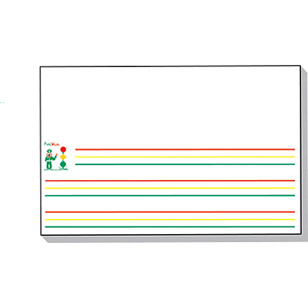 A Great combination for teaching both manuscript and cursive writing. All products are produced using our best 20 lb. white writing paper. Ruled 1/2" with a green "go" line, a yellow center "caution" line, and a red top "stop" line with a 1" space between writing groups.