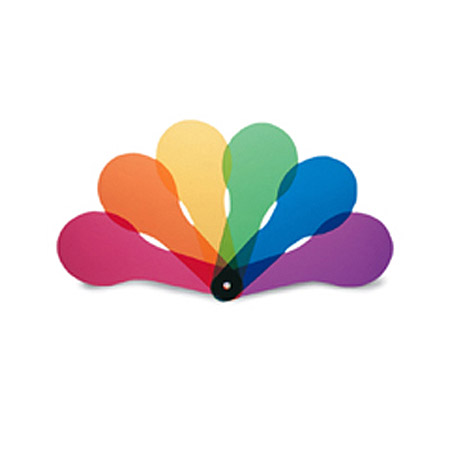 Transparent 6" paddles in six colors with three textures demonstrate the principles of color mixing.