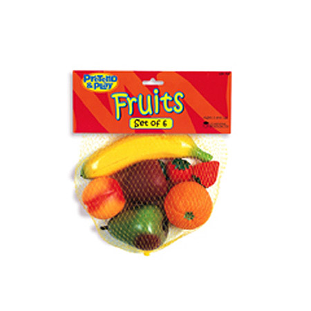 Stock up on fruits with this durable set of soft plastic play food. Includes apple, pear, peach, orange, banana, and strawberry. Ages 3 to 7