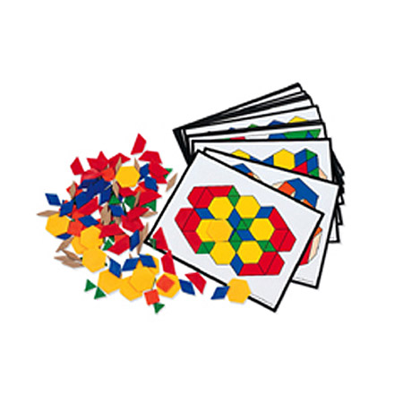 Encourage geometric exploration! Set includes 36 design cards, varying in complexity, and 124 Plastic Pattern Blocks in six shapes and colors. Great for patterning and reasoning practice.